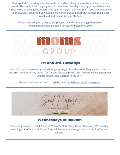 Heritage Baptist Church exists to lead people to find, know, and follow Jesus Christ.  For the past 34 years our desire has been to teach the Word of God and spread the gospel in our community, nation, and to the ends of the earth.